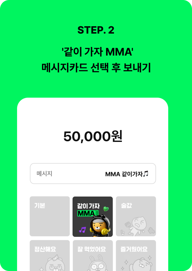 - 이벤트 페이지를 통해, 'MMA 메시지카드'로 간편이체 진행시에만 추첨 대상이 됩니다.